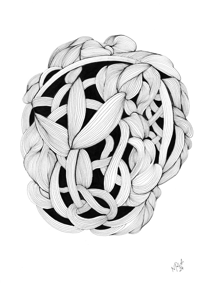 Medium: Black fineliner on paper (scanned from A4 to high-resolution A2)